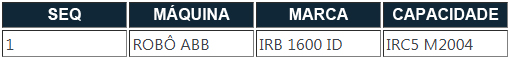 Tabela de Equipamentos de Solda.